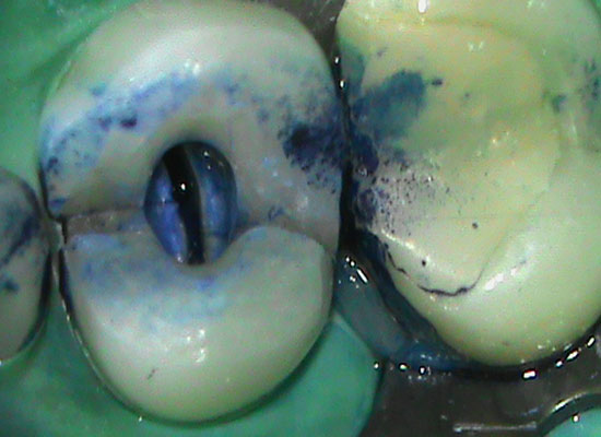 Hoy en día es muy frecuente el hallazgo de fisuras dentales. En muchos casos su diagnóstico es muy complejo ya que no podemos verlas. Los pacientes suelen presentar molestias que nos hacen sospechar de su presencia, pero el diagnostico definitivo sólo podemos realizarlo mediante la tinción y observación de la fisura mediante microscopio.
